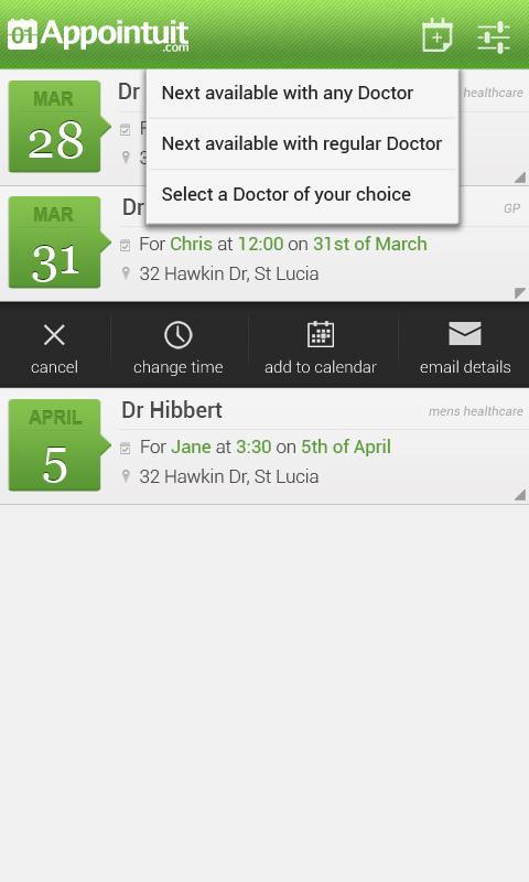 Appointuit memungkinkan Anda membuat janji medis untuk Anda dan keluarga Anda.