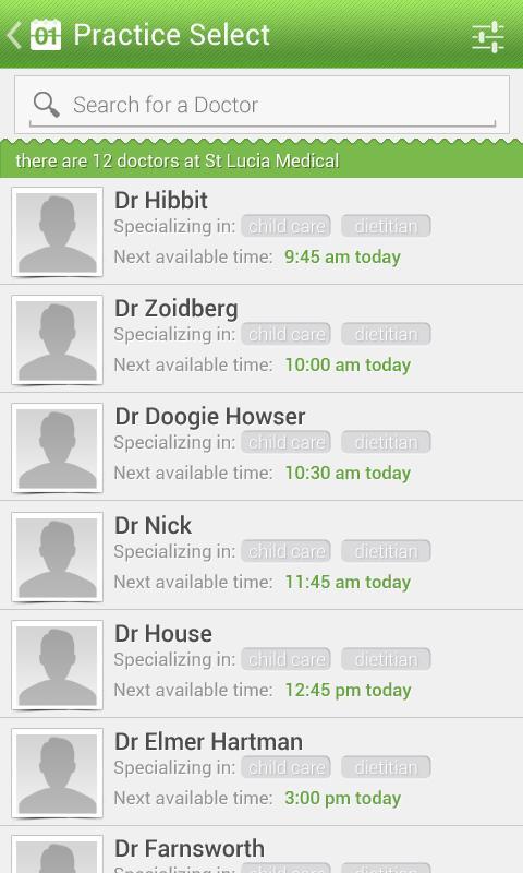 - Kemampuan untuk dengan cepat memesan dengan dokter reguler Anda, dokter berikutnya yang tersedia, atau dengan memilih dokter mana pun